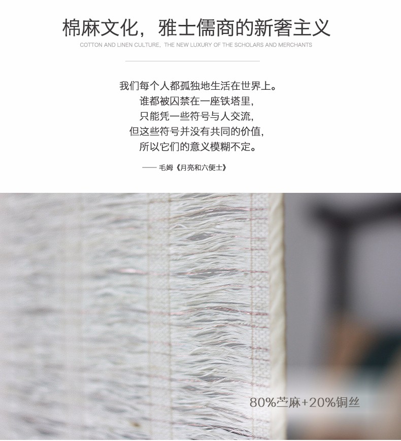 天然材料因产地、生长年份的气候、收割和储存时间的不同会造成相同材质的产品颜色和样本会略有不同。即使是同一批次的材料也会因日照和养分的不同造成颜色略不同,面料上偶尔也会有渐近线的色差。